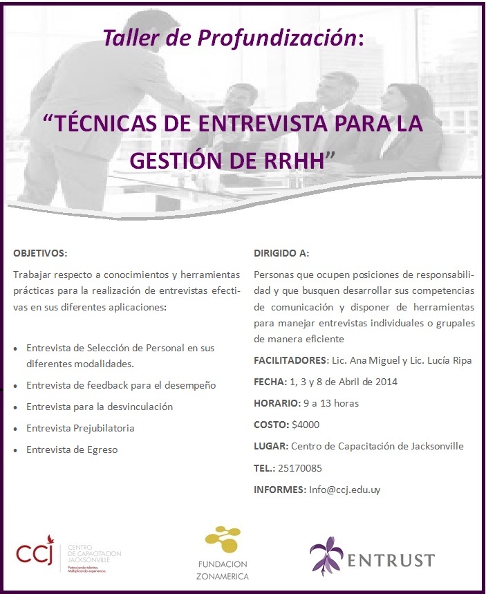 "Entrust está formado por un equipo de profesionales especializados en Recursos Humanos que brindan servicios en las áreas de Búsqueda y Evaluación de Personal, Desarrollo Organizacional y Desarrollo de Personas. Cuenta con destacados clientes nacionales e internacionales, siendo su principal objetivo el conducirse con profesionalismo y creatividad para responder de forma personaliza- da a las necesidades actuales tanto de las empresas como de los candidatos. Asumen el compromiso de ser una organización que desde su labor pueda contribuir con el desarrollo de la sociedad, mediante el acercamiento de la oferta y la demanda de empleo y el fortalecimiento de ac titudes y competencias que habiliten el crecimiento personal e institucional." |